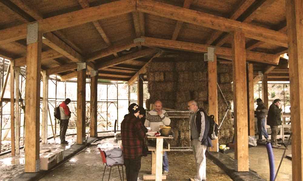 Gli aspetti innovativi del materiale riguardano la possibilità di ottenere elementi precompressi, prodotti con forme diverse, realizzati in materiale fibroso secco compostabile in stato di compressione, inseriti all’interno di celle chiuse, il tutto contenuto all’interno di un guscio. Le celle e i gusci sono in stato di tensione e sono costituiti da polimeri organici termolegati compostabili. Il materiale organico fibroso, le cellule e il guscio sono configurati per mantenere uno stato di coazione permanente, con il materiale organico fibroso permanentemente compresso e il guscio bio-polimero permanentemente in tensione.